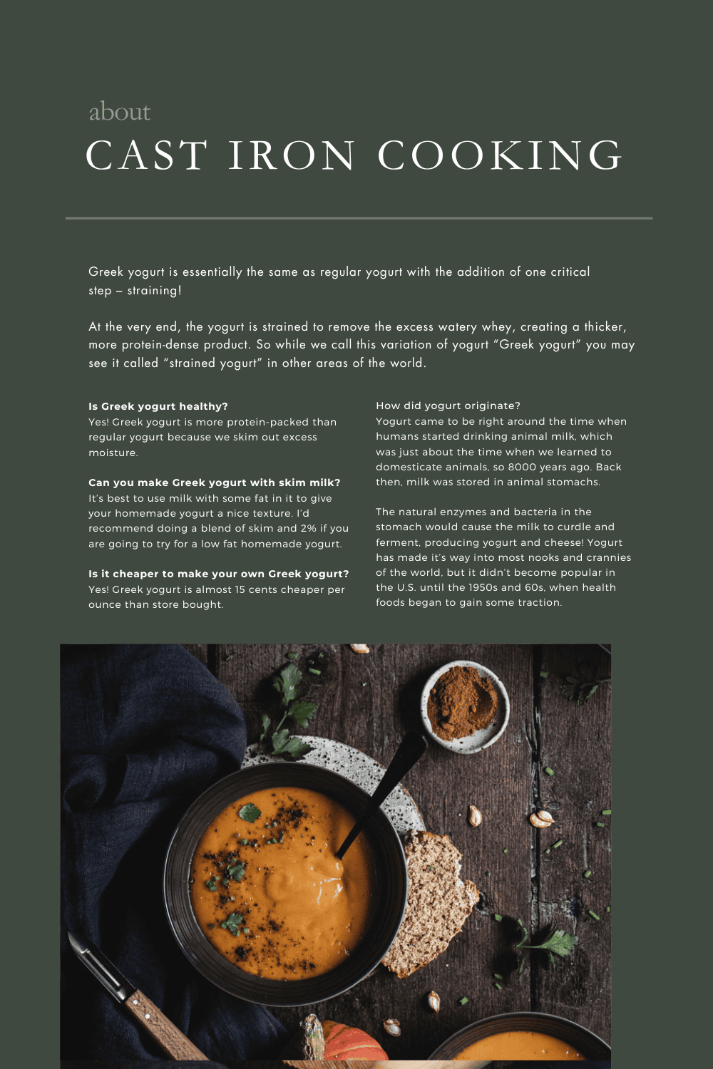 In this E-book, I’ll cover everything you need to know from cooking to cleaning, so that your treasured cast iron will last a lifetime, as well as 10 easy cast iron recipes to get you started.