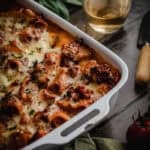 This bolognese bake is serious comfort food—rich, filling, and a big batch can last for days! My kind of recipe! Slow-cooked in a Dutch oven, letting the flavors meld together, paired with rigatoni pasta and topped with bubbling mozzarella and Parmesan, it’s the kind of comfort food that makes everyone drool when it comes bubbling out of the oven.