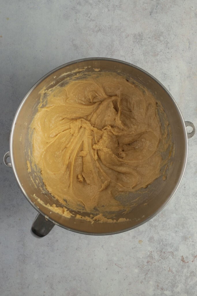 - In the bowl of a stand mixer, cream the butter & sugars for 2 minutes on medium speed till combined. Add eggs one at a time and the vanilla extract. Beat well after each addition.