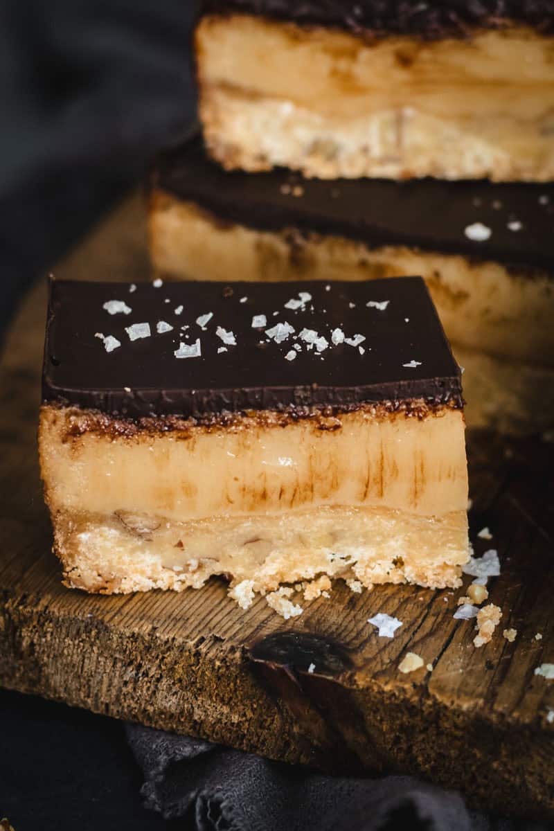 Ahhh caramel slice (or Millionaire’s shortbread if you don’t live in the land down under). It’s an Aussie schoolkid favorite and the ultimate sweet treat – A layer of delicious gooey caramel sandwiched between a shortbread layer and chocolate. What’s not to love? Well here’s my version of this classic with a twist…