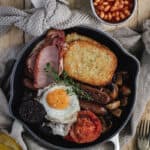 - Pop all the cooked ingredients on a plate and serve with 2 slices of soda bread (and butter), a cup of tea, and a glass of orange juice.