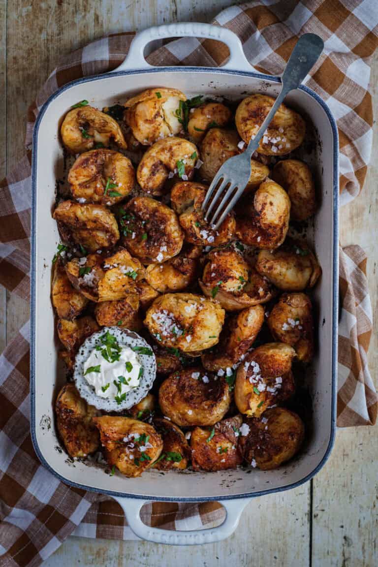 They Cajun roasted potatoes are spicy and crispy on the outside, fluffy potato goodness on the inside. Just how a good roast potato should be!